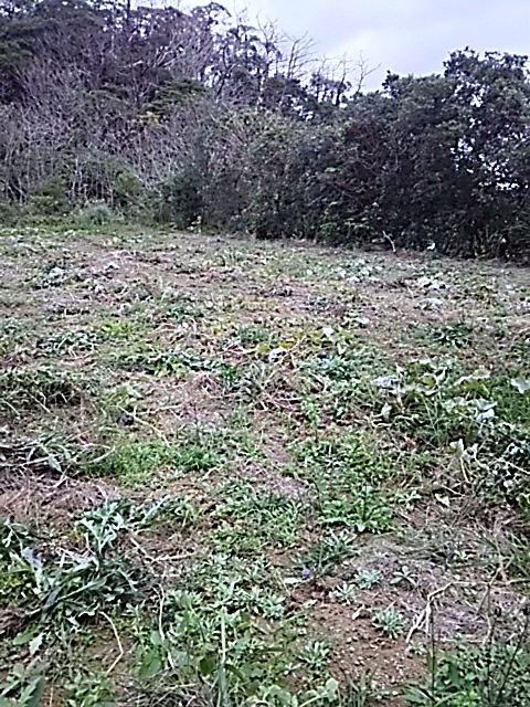 収穫前、ものがどこにあるか分かりにくいので軽く草引き